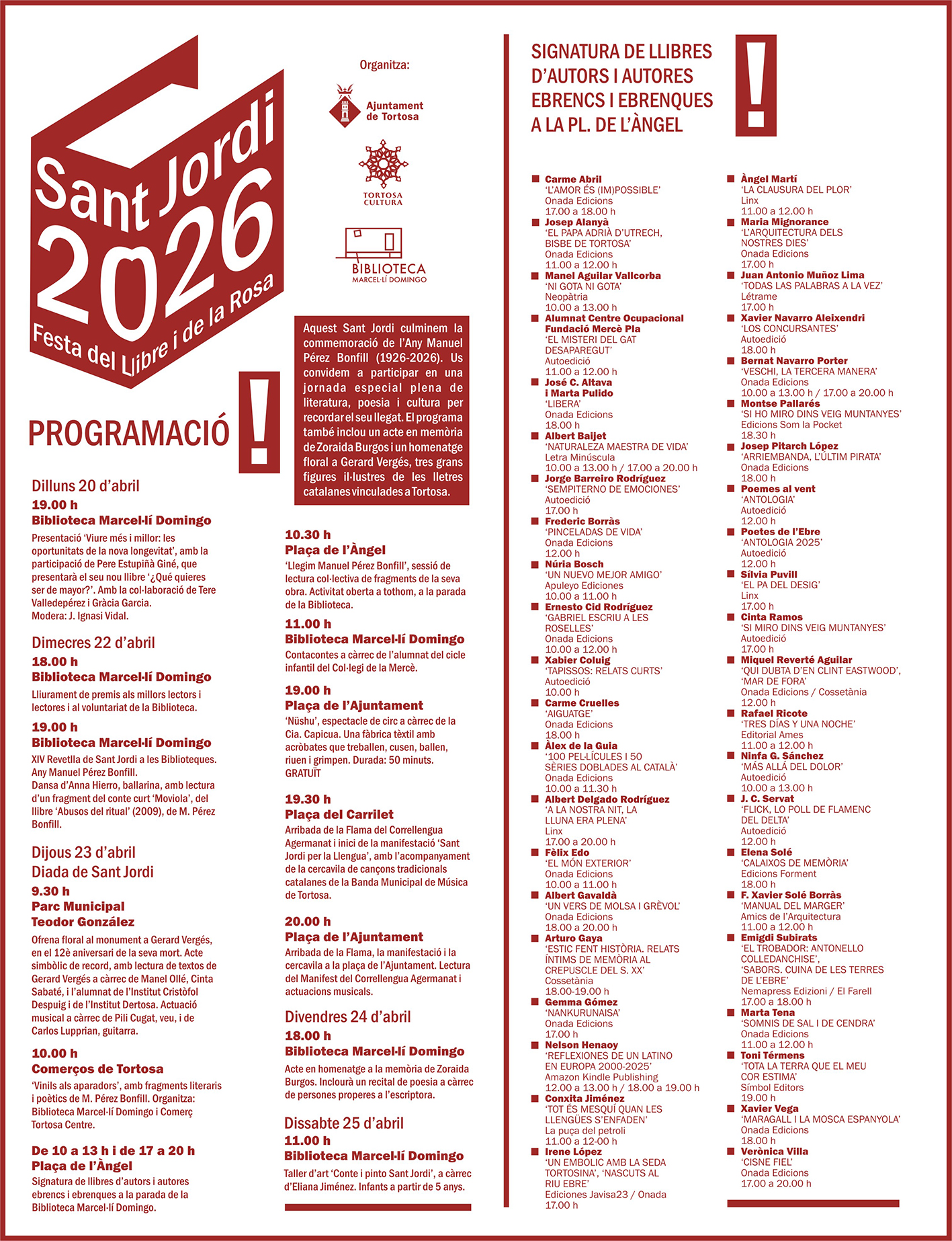 Cultura. La Biblioteca Marcel·lí Domingo i l'Ajuntament presenten una setmana carregada d'activitats, amb novetats com la ruta literària 'Vinils als aparadors'