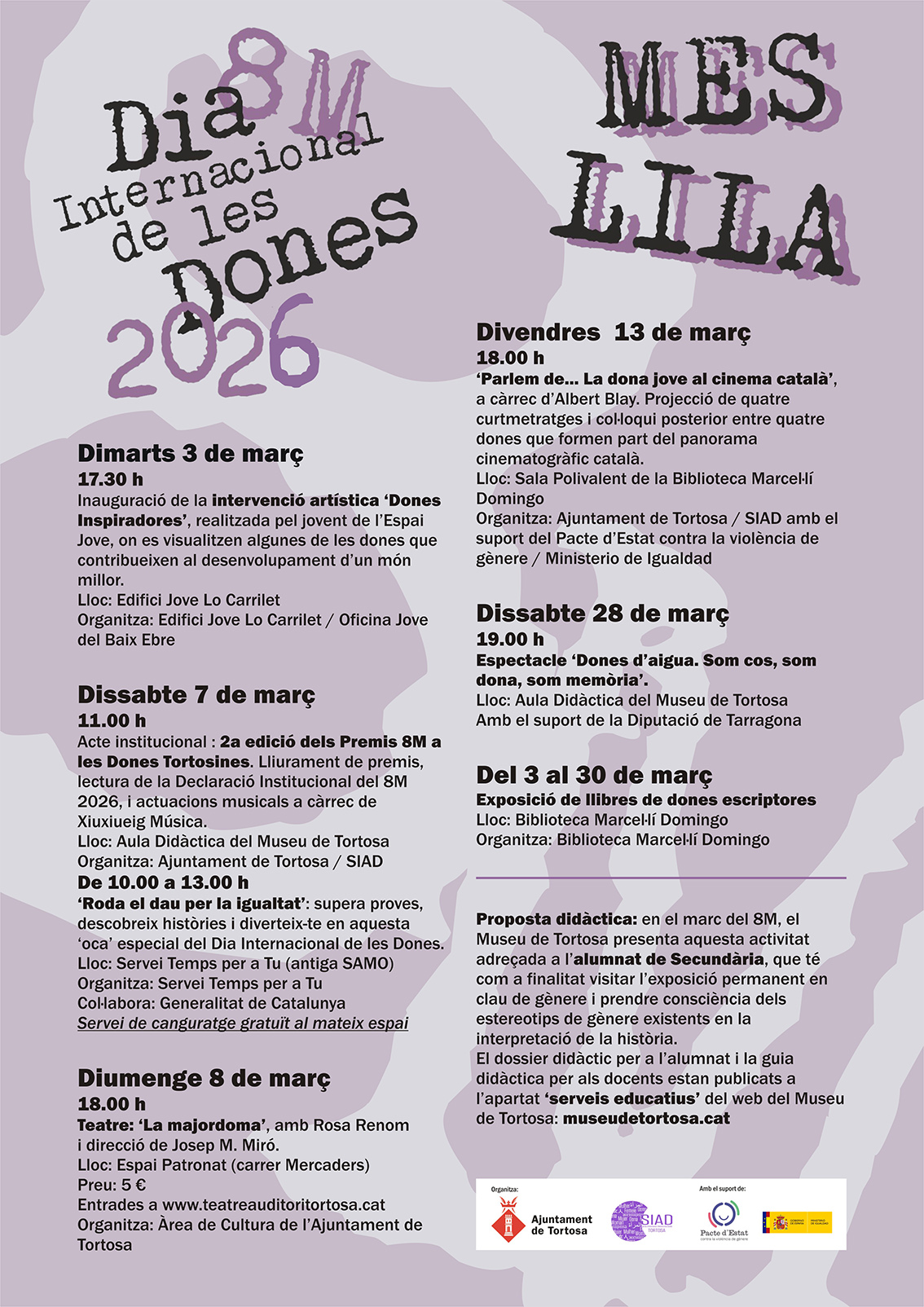 Drets Socials. Dissabte es farà l'entrega de la segona edició dels Premis 8M a les Dones Tortosines, amb un total de nou reconeixements en les diferents categories