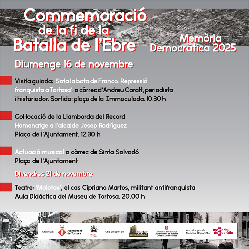 Cultura. El 16 de novembre es commemorarà la fi de la Batalla de l'Ebre i s'inaugurarà la senyalització dedicada als bombardejos feixistes i a Jacint Arbona