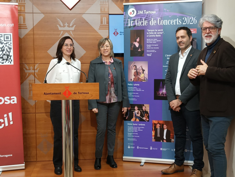 Un homenatge a la gran soprano Conxita Badia, deixebla del tortosí Felip Pedrell, obrirà este dissabte el primer cicle de concerts del 2026 de Joventuts Musicals, que avui ha presentat la nova programació a l'Ajuntament de Tortosa. Es tracta del concert ‘Sempre he sentit la follia de cantar’, que tindrà lloc al Centre Cívic Ferreries a partir de les 19.30 hores. "Conxita Badia va ser hereva del projecte musical de Pedrell, qui va ser el seu padrí de noces", ha destacat l'alcaldessa de Tortosa, Mar Lleixà, acompanyada per la presidenta de Joventuts Musicals, Elisa Huguet, i pel primer tinent d'alcaldia de Cultura, Jordi Jordan.