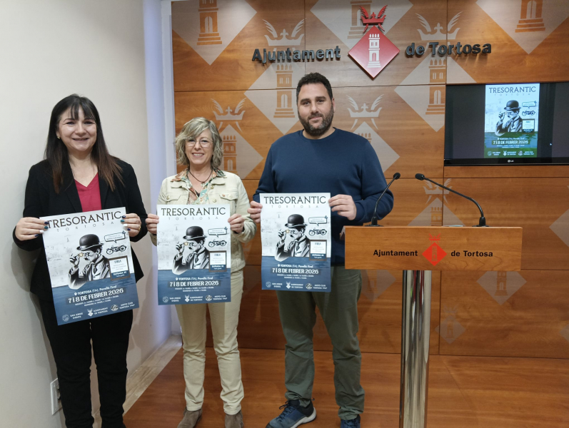 L'Ajuntament de Tortosa ha presentat la segona edició de la fira Tresorantic, que es podrà visitar al pavelló firal de Remolins el proper cap de setmana del 7 i 8 de febrer. Es tracta d'un certamen impulsat de la mà de San Jorge Events, una entitat amb una destacada trajectòria en l’organització de fires d’antiguitats i de col·leccionisme. "En la seua primera edició, Tresorantic ja va ser un èxit, amb una trentena d’expositors procedents d’arreu de Catalunya i de la resta de l’Estat. En esta segona edició, Tresorantic creix i esperem comptar amb uns 50 expositors de tot Catalunya, de la resta de l’Estat i de França", ha afirmat l'alcaldessa de Tortosa, Mar Lleixà, qui ha comparegut acompanyada per la regidora de Fires, Sònia Rupérez, i per un dels membres de l'organització, Jorge Traver Gil.