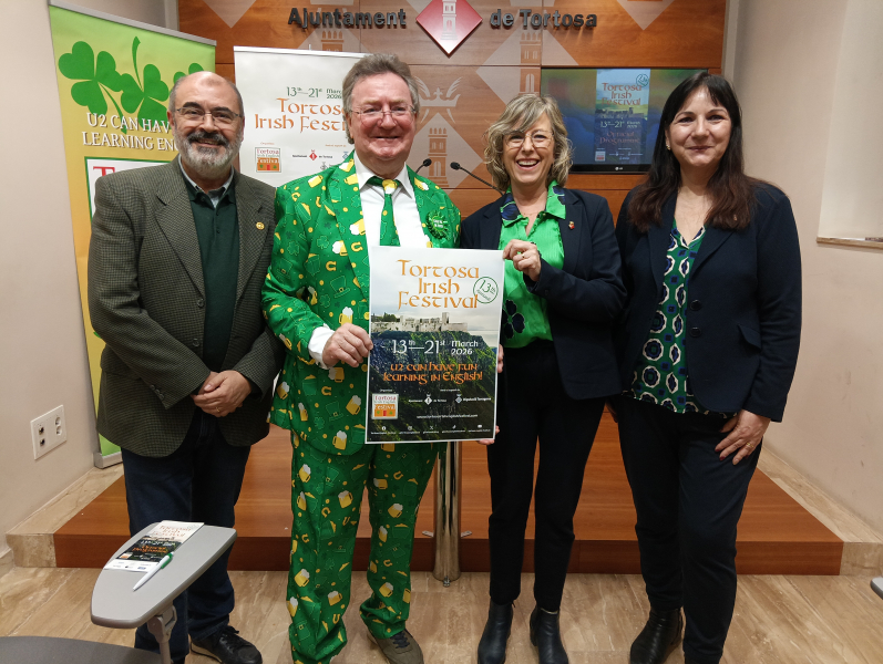 Tortosa serà l’escenari de la tretzena edició del Tortosa Irish Festival, que enguany fa un pas endavant amb un creixement important, tant en durada com en abast educatiu i social. El certamen amplia el seu calendari d’activitats i seran un total de nou dies, del 13 al 21 de març. "El Tortosa Irish Festival culminarà el dissabte 21 de març amb la ja tradicional nit de tapes al Mercat Municipal, que serà l’acte de cloenda del certamen", ha anunciat l'alcaldessa, Mar Lleixà, qui ha comparegut acompanyada de la regidora de Turisme i Mercat, Sònia Rupérez, i de dos dels organitzadors del festival, Paul O'Riordain i Jordi Pellejà.